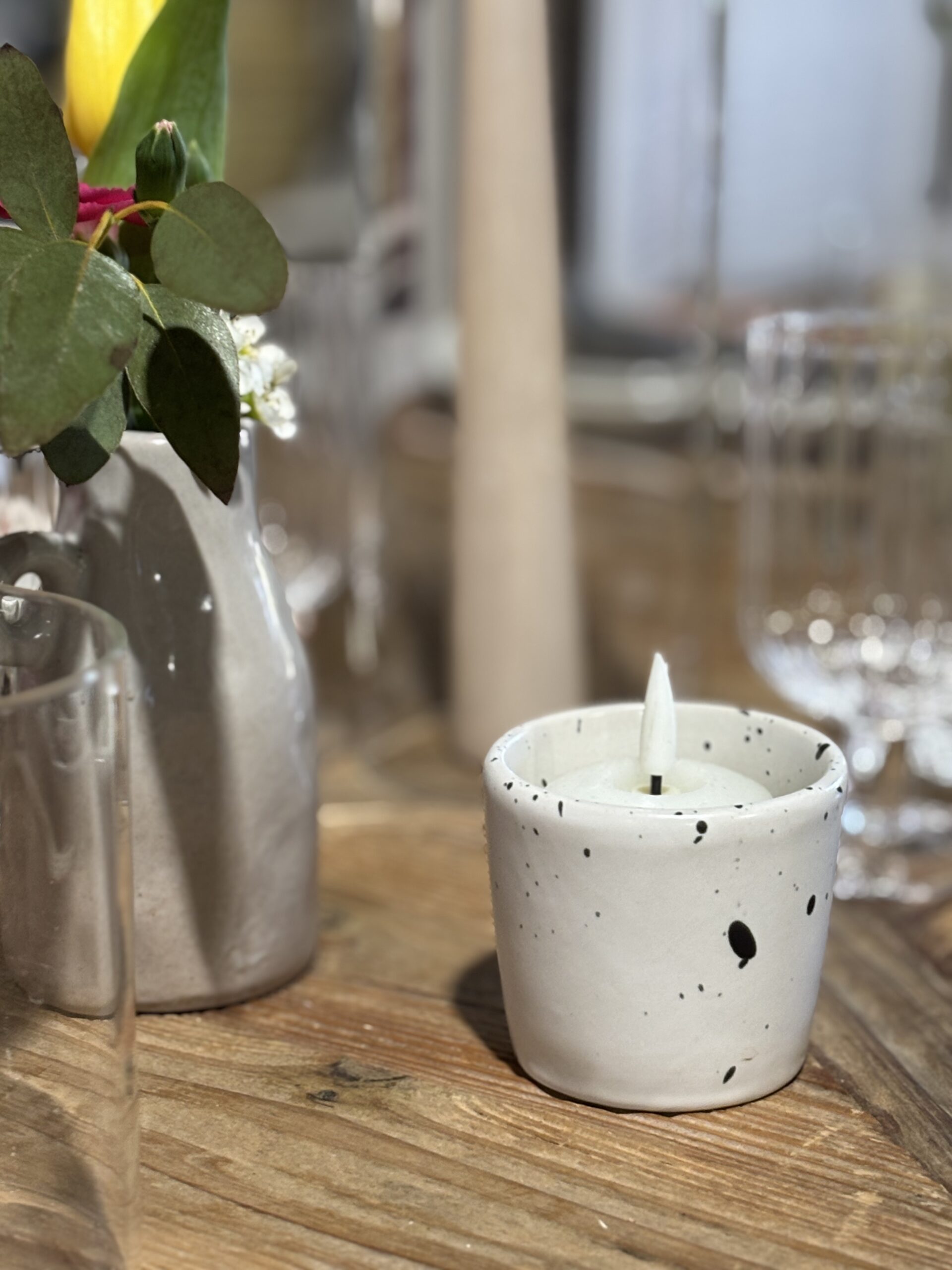 Petit Bol Moucheté Couleur crème avec de petites tâches noires.