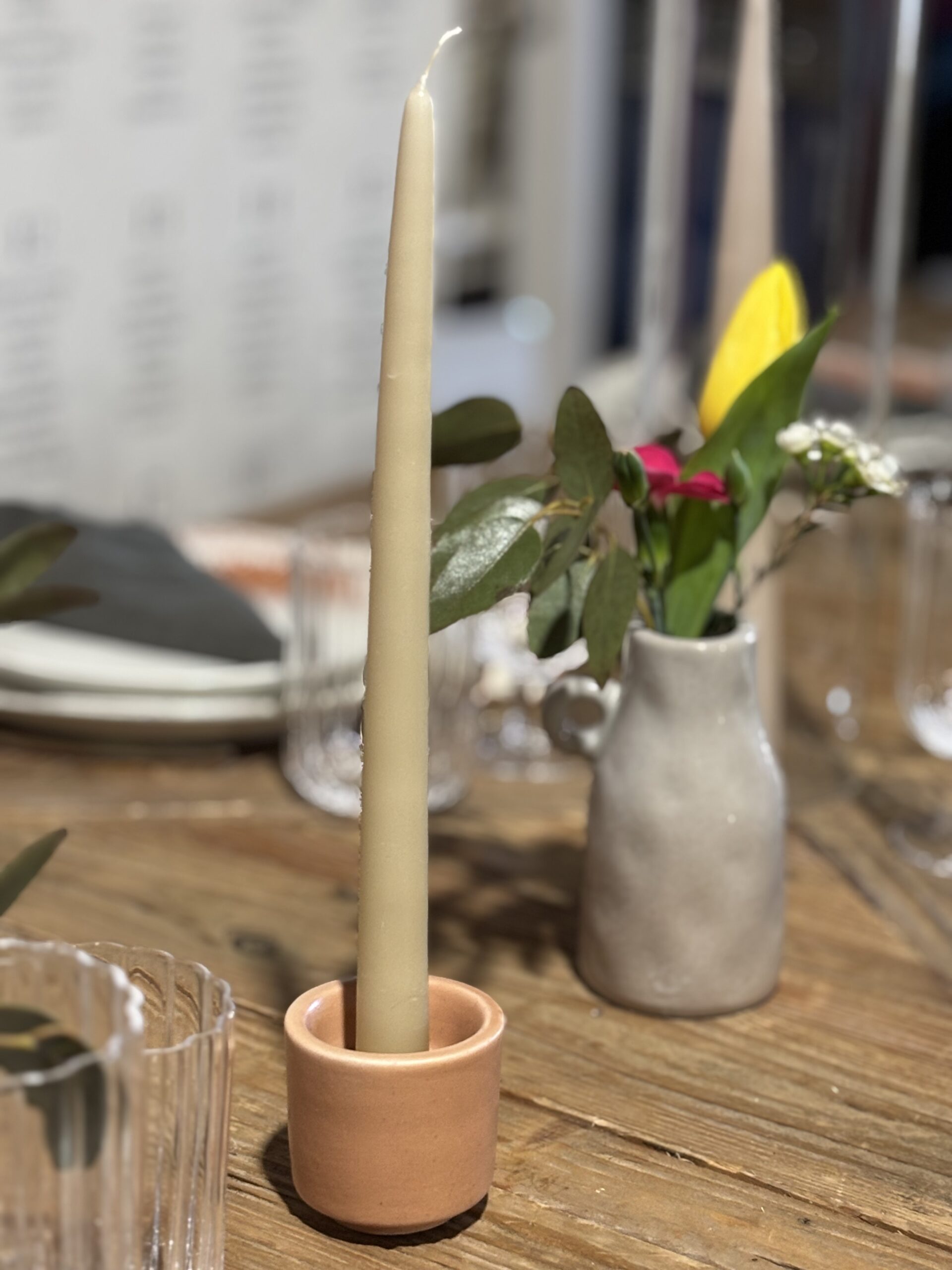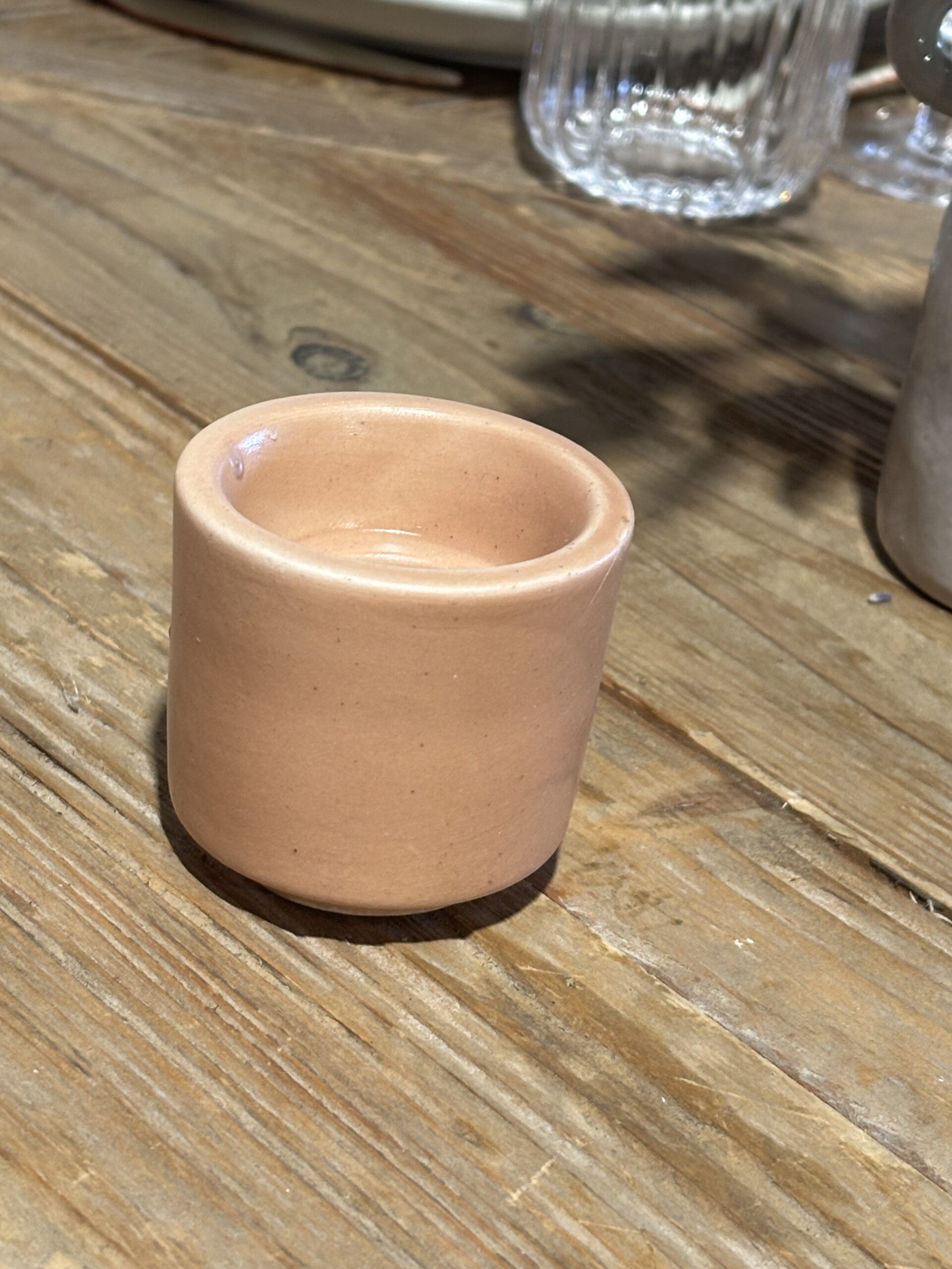Petit bougeoir couleur terracotta.