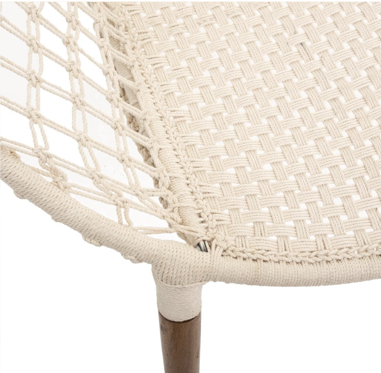 Fauteuil en teck et tressé coton blanc. Peut servir d’assise pour votre cérémonie pour pour votre cocktail.