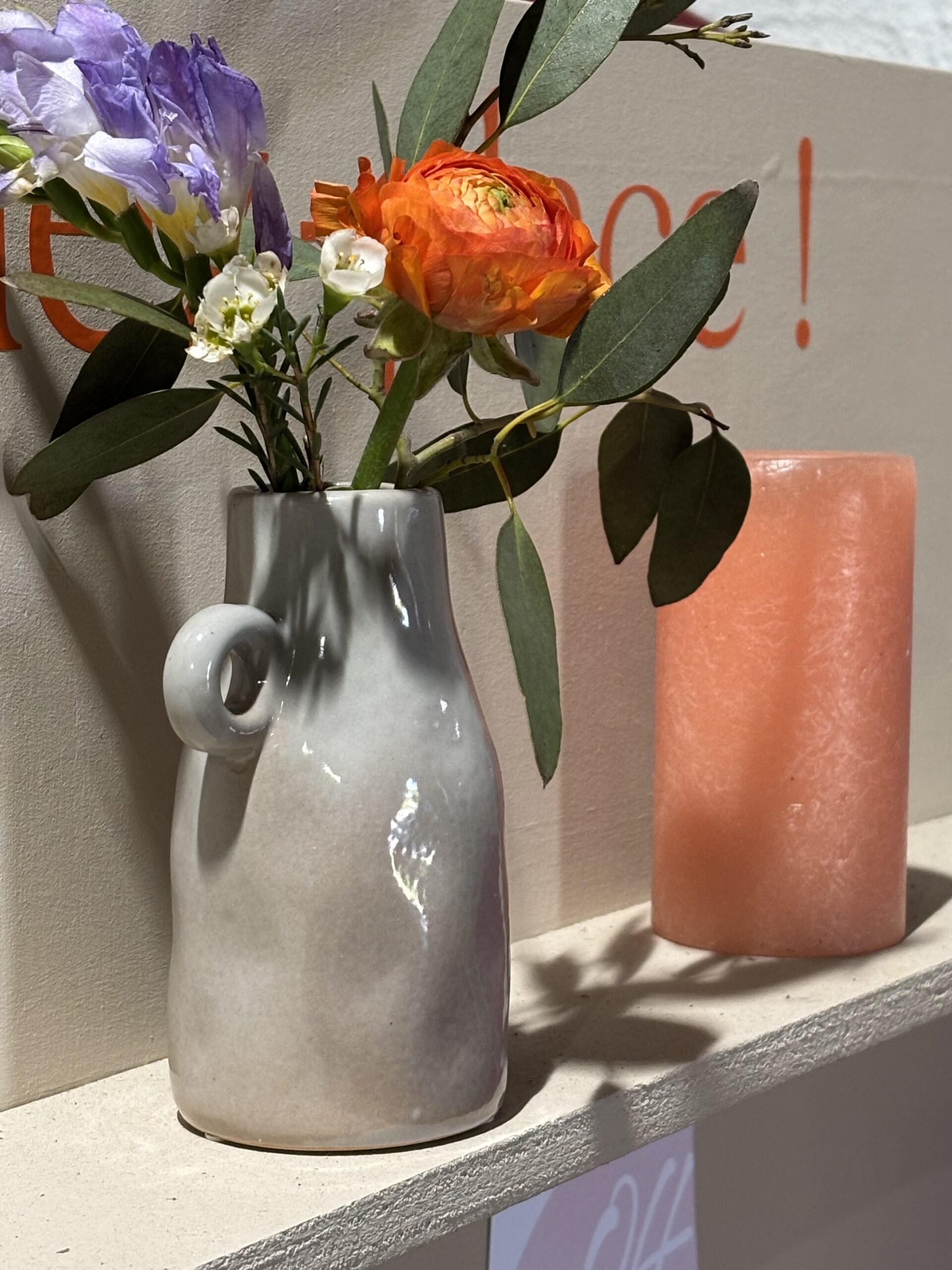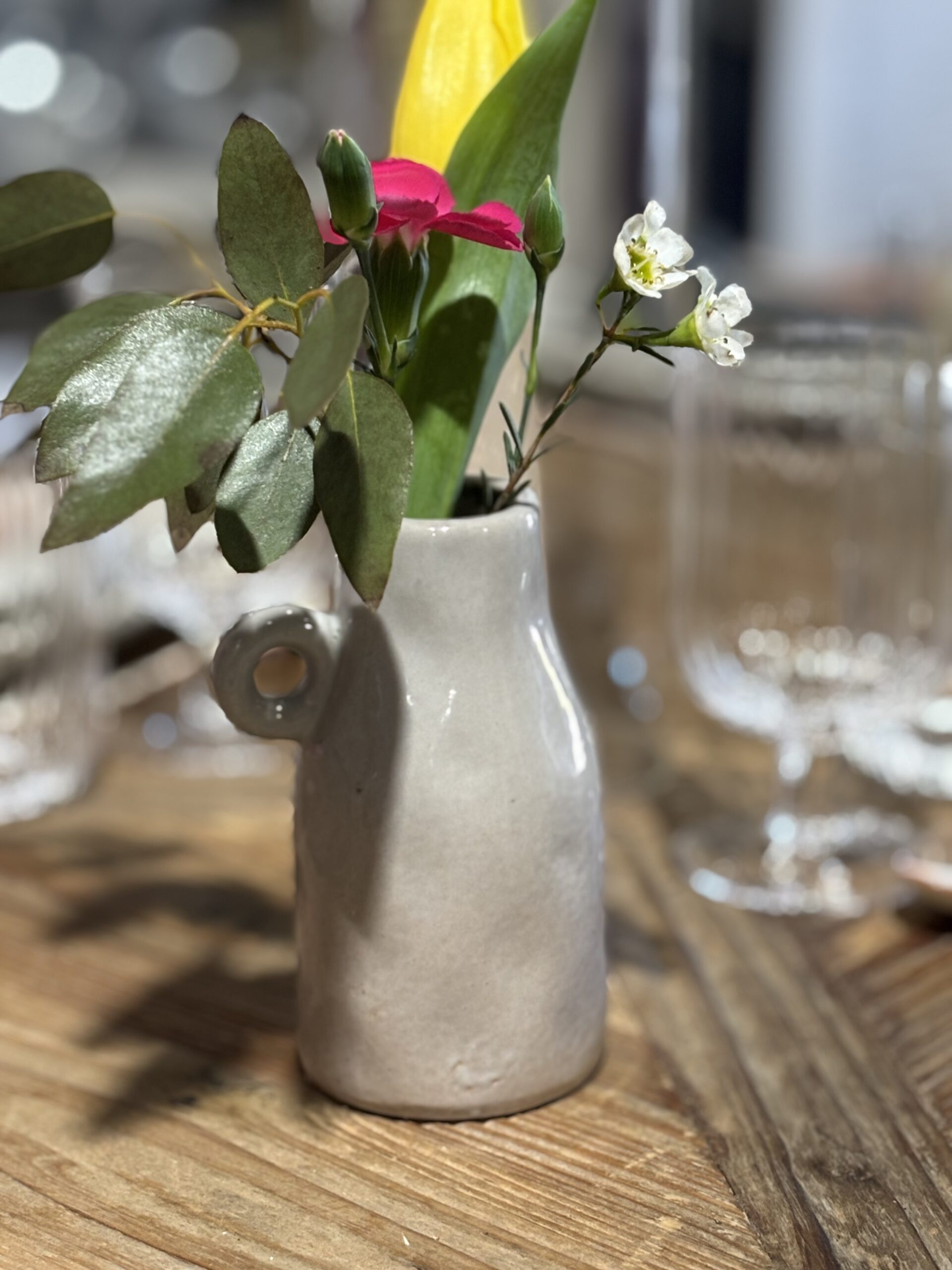 Soliflore gris avec anse et finition brillante pour fleurir vos tables !