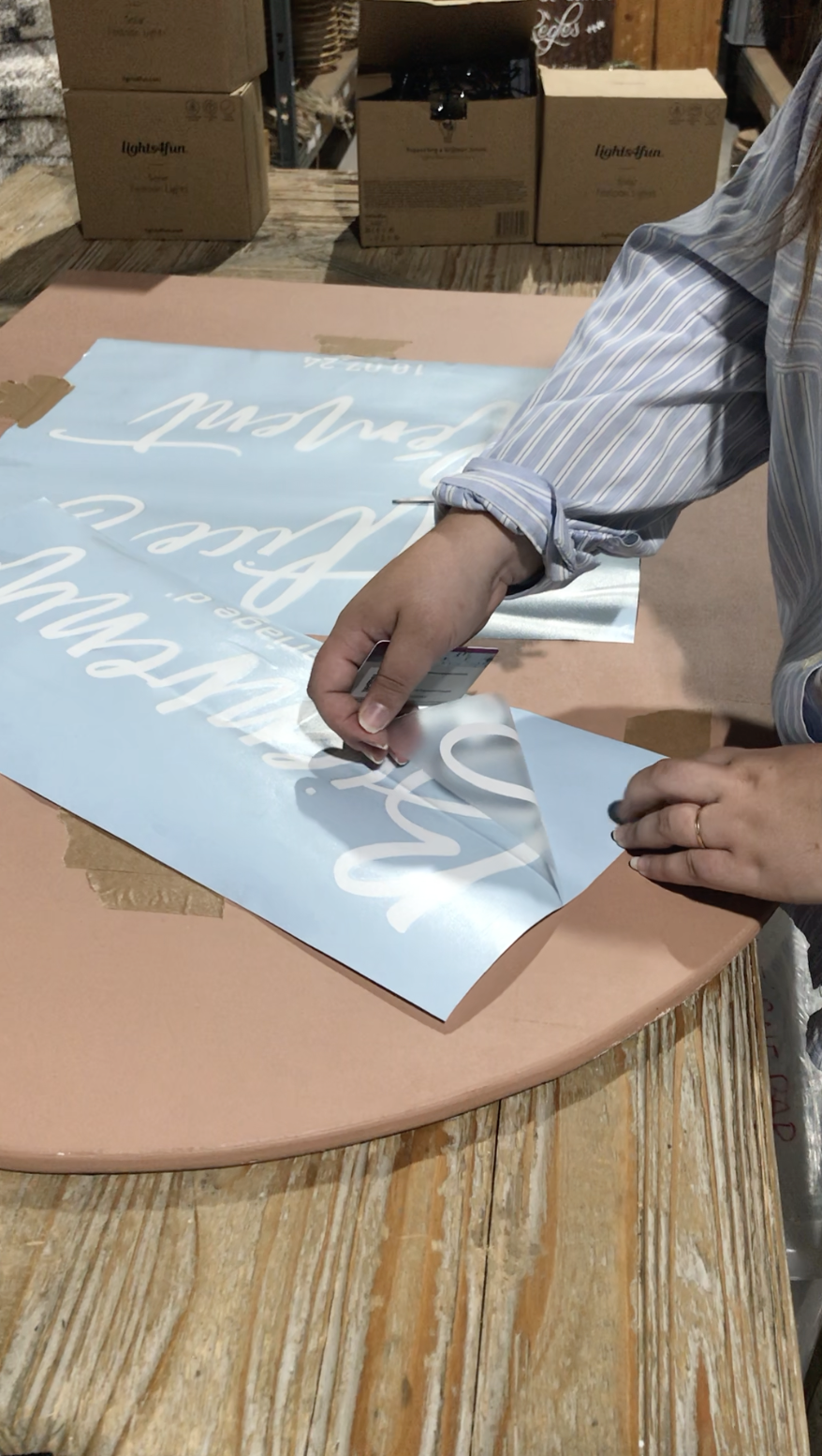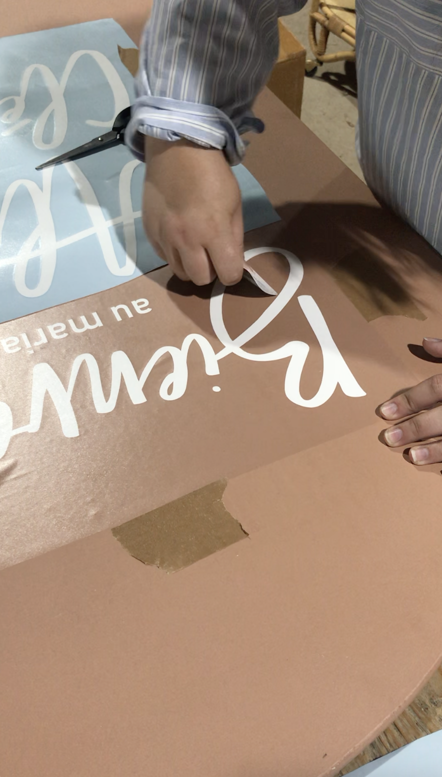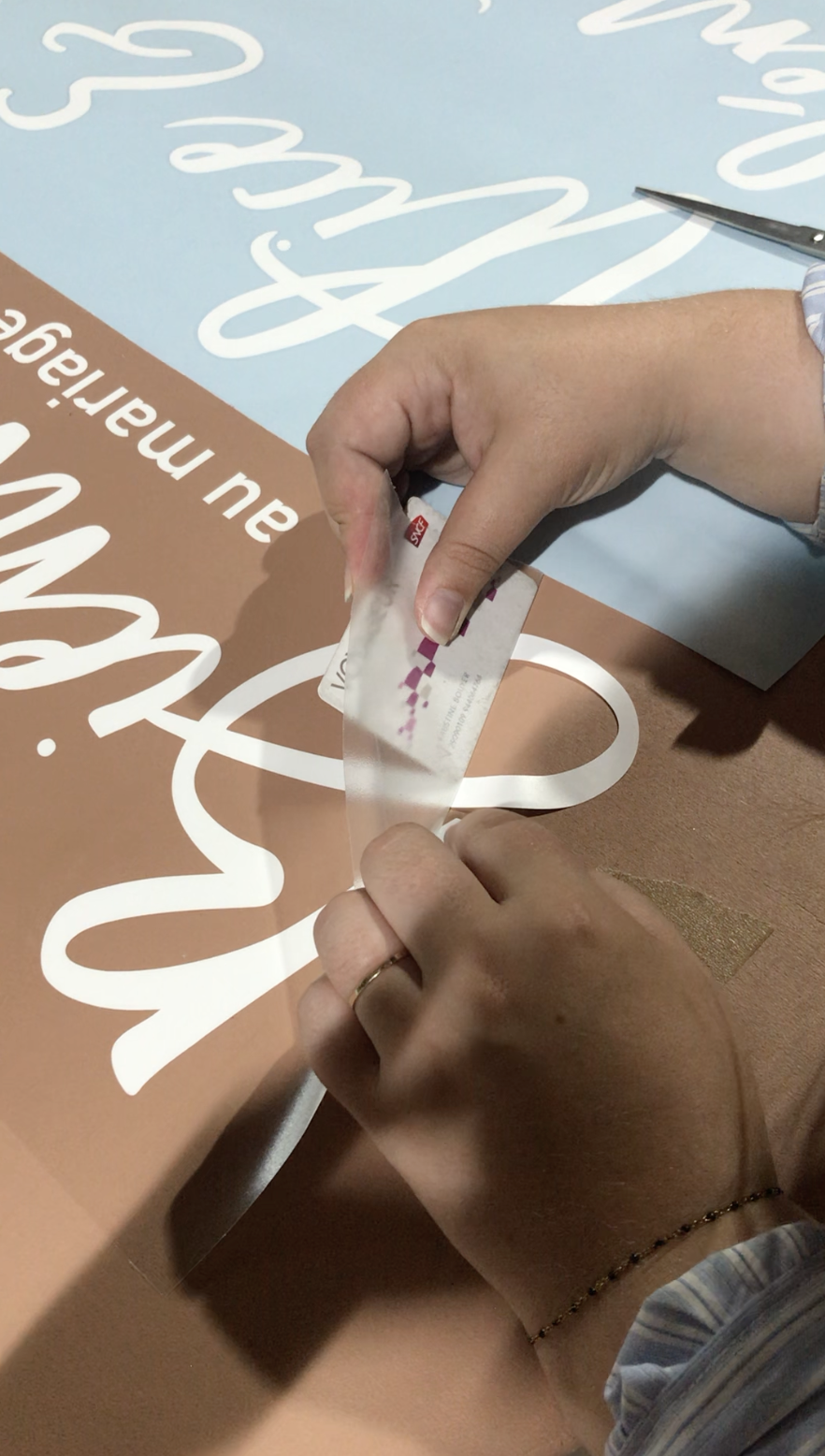 Cette étape demande patience et minutie. Soulevez délicatement le film transparent. Passez vos doigts sur les lettres au fur et à mesure pour assurer une bonne adhésion.