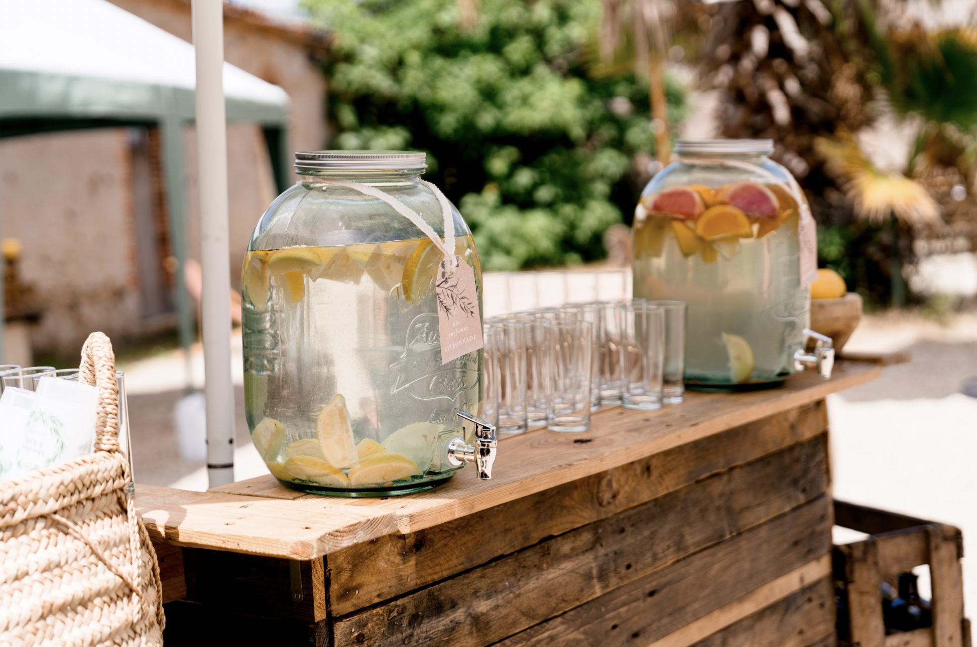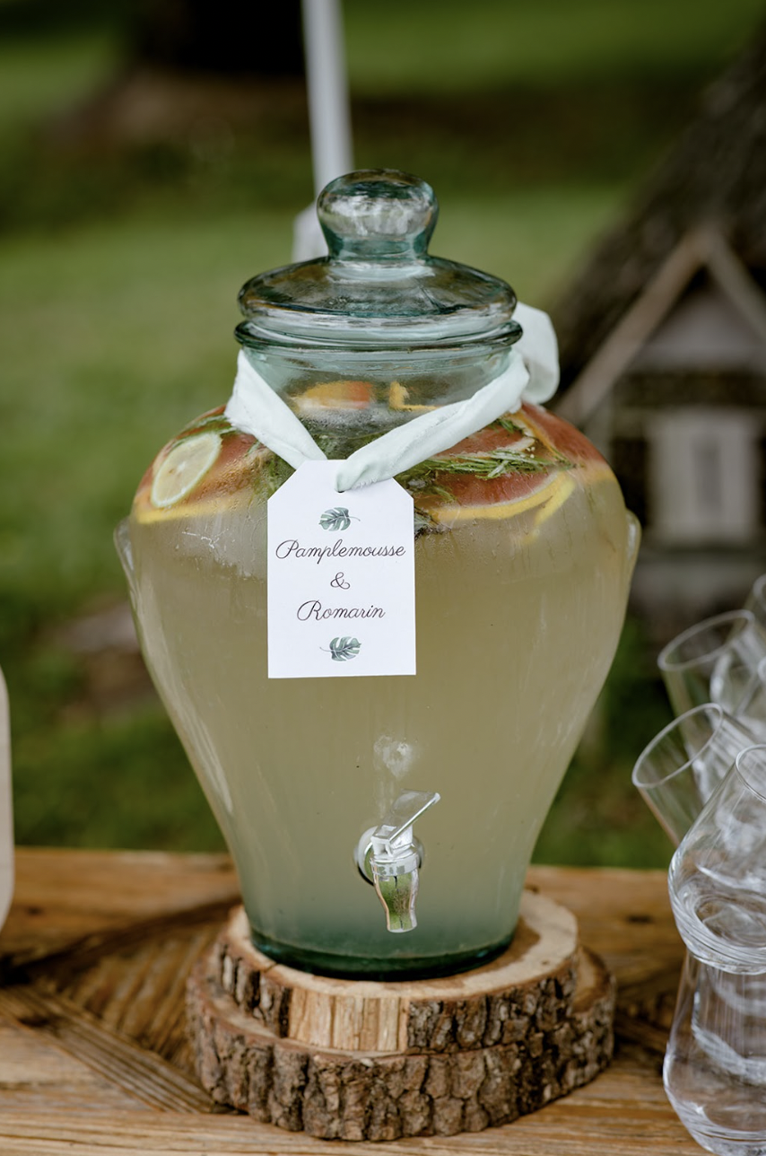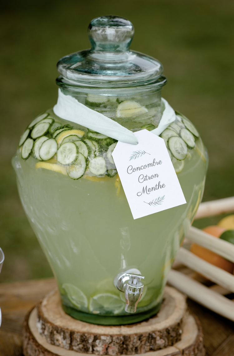 - Présentations élégantes : servez-les dans des bonbonnes avec robinet, accompagnées de pailles, d’écocup personnalisés.. 🥤🌿