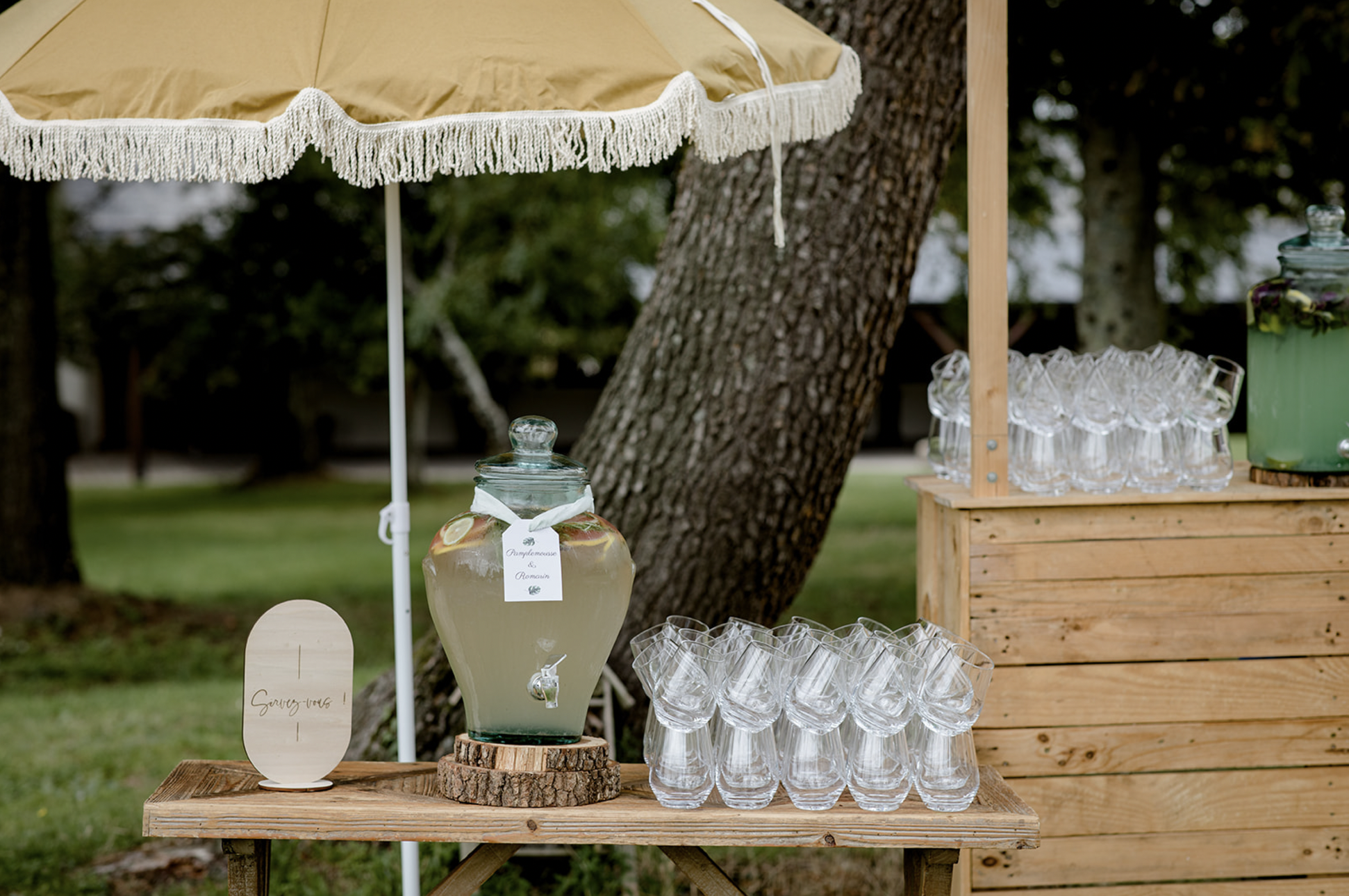 L’accueil de vos invités est une étape clé de votre mariage : c’est le premier instant où ils plongent dans l’univers que vous avez imaginé. Pour rendre cette attente agréable et mémorable, pourquoi ne pas leur offrir un espace rafraîchissant et élégant dès leur arrivée ? 🍹🌿